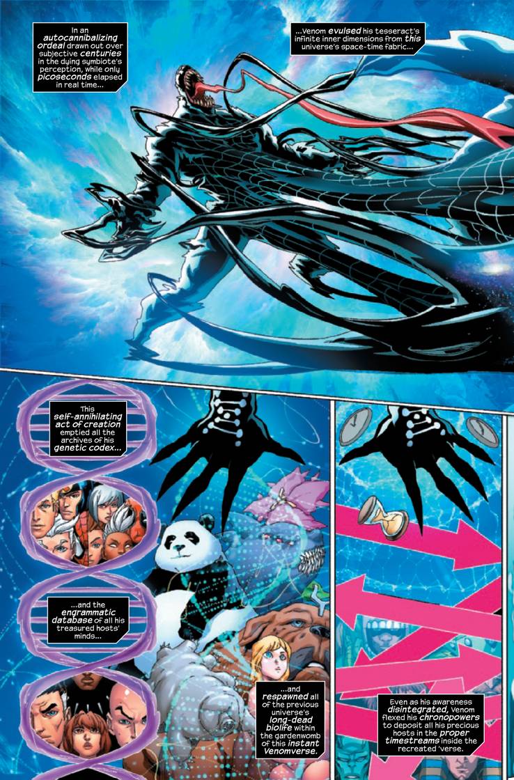 Como seu ato final, Venom se sacrifica, puxando a rede extra dimensional e usando-a para criar um novo universo – o Venomverso -, povoado usando o códice genético de toda a vida biológica no universo. Embora o A.S.I. saiba o que Venom fez e pode ver seu universo entre o multiverso, o programa deixa o Venomverso como “a maior reserva natural de todas as criações”.