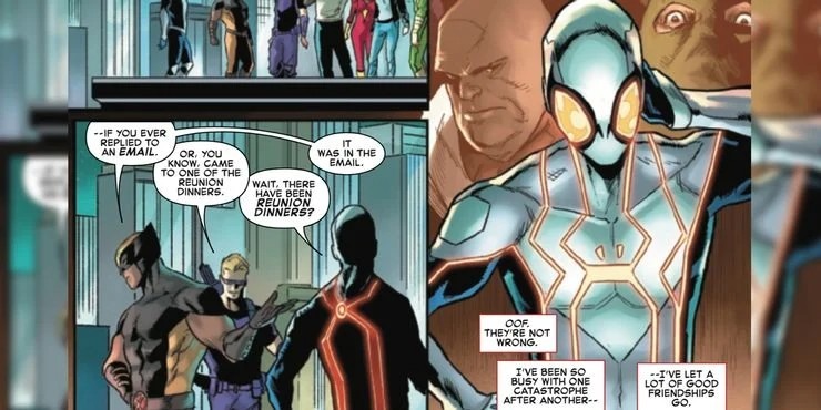 Em Giant-Size Amazing Spider-Man #1, Peter Parker vai pedir ajuda aos seus amigos super-heróis, mas eles dão a ela uma lista do porquê ele não foi bom amigo.
