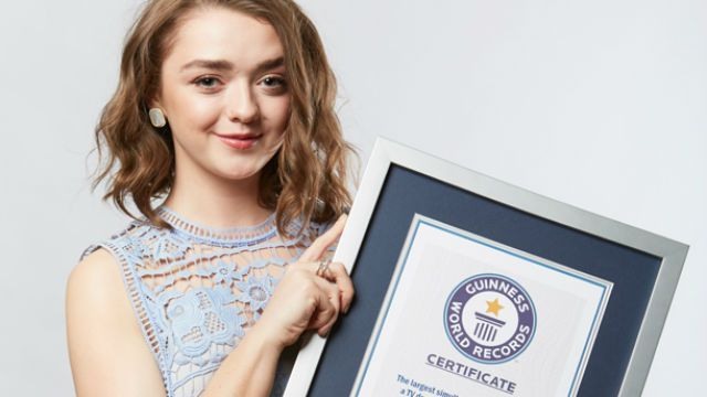 Maisie Williams, a Arya Stark na série, recebeu o prêmio em nome da equipe e elenco – veja as fotos mais abaixo. A edição 2016 do Guinness World Records será lançada em 10 de setembro.