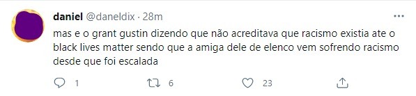 Nas redes, muitos apontaram que a atriz Candice Patton, que vive Iris West em The Flash, sofreu ataques racistas por anos. Portanto, ele deveria saber mais sobre racismo.
