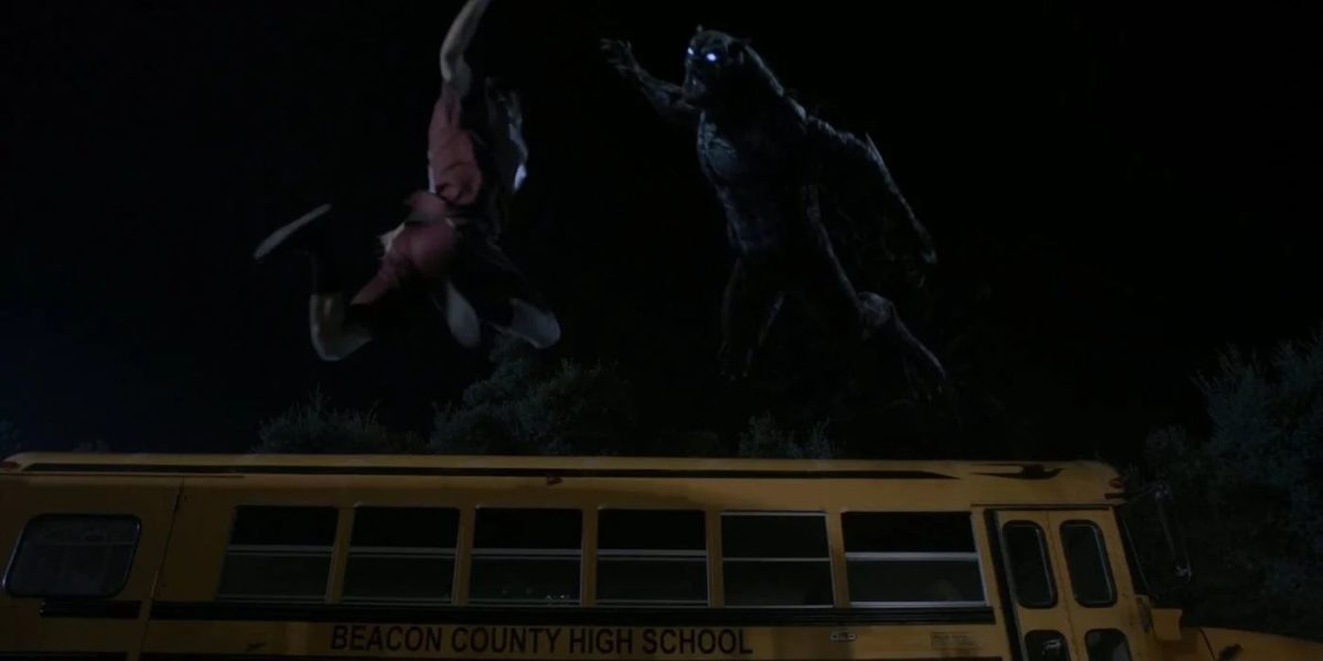 No capítulo vemos um confronto de MG com um lobisomem perto de alguns ônibus escolares amarelos. Vemos pulos na direção um do outro em cenário tipicamente escolar estadunidense.