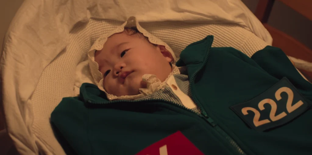Quando você acha que Round 6 já chegou ao limite, ela dá mais um passo e se torna ainda mais insana do que você imaginava. Trata-se da inclusão da bebê, na última temporada, filha da jogadora 222/Jun-hee. Como dito anteriormente, ela nasce durante o jogo de esconde-esconde e a senhorinha Geum-ja faz o parto dela.