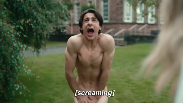 Na trama de Sex Education, fãs ficaram ainda mais impressionados, já que o personagem de Lino Facioli exibe seu físico em uma cena divertida. Veja abaixo uma foto.
