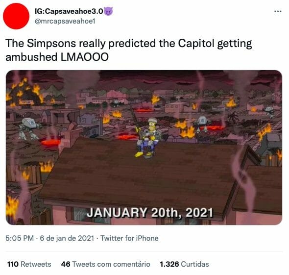 Em janeiro de 2021, apoiadores da extrema-direita, motivados pelo ex-presidente Donald Trump, tentaram invadir o Capitólio dos EUA para tentar anular a vitória de Joe Biden, que aconteceu a partir do sistema democrático. Acontece que o 31º especial de terror de Os Simpsons trouxe um capítulo ligado às eleições, mostrando um cenário de guerra civil justo em janeiro de 2021.