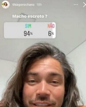 Thiago chegou a criar uma enquete na rede social para conhecer melhor a opinião do público. Mais de 90% dos seguidores concordaram que o catarinense é um “macho escroto” (veja abaixo).