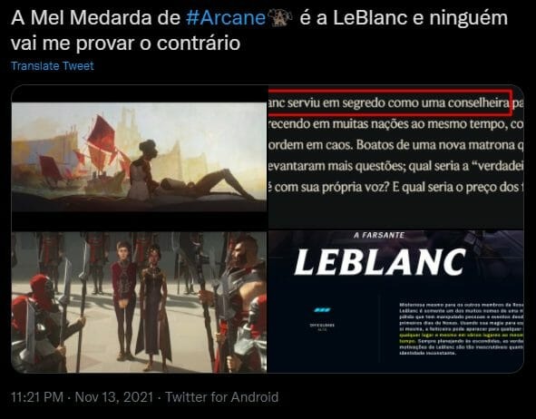 Alguns fãs de Arcane também acreditam que Mel Medarda é, na verdade, LeBlanc disfarçada, já que uma descrição da personagem afirma que ela “serviu em segredo como uma conselheira”. Veja abaixo os principais argumentos.