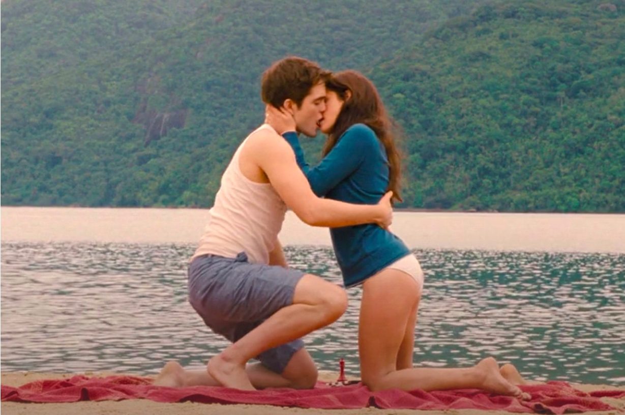 Depois de se segurar perto de Bella (Kristen Stewart) por um ano, Edward (Robert Pattinson) enfim consegue ter um momento com a amada. Isso acontece após a transformação dela, em que os dois têm um sexo vampiresco, que além de beijos quentes, tem ainda roupas rasgadas, possíveis ossos quebrados e muitas mordidas. O momento é de A Saga Crepúsculo: Amanhecer – Parte 2.