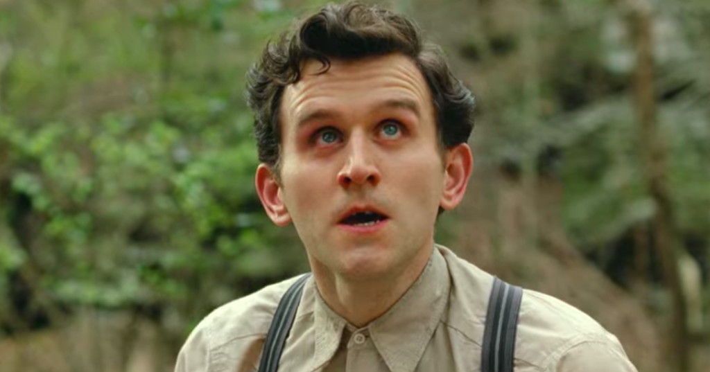 A figura em questão é Harry Melling, que quando criança ficou conhecido por Harry Potter. Em O Diabo de Cada Dia, o famoso aparece como um pregador.