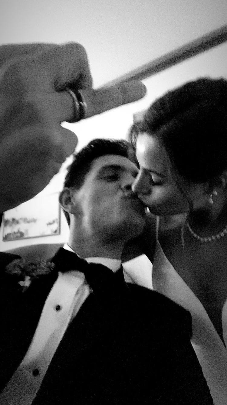 O próprio ator publicou uma foto em preto e branco, mostrando ele, de terno, beijando a noiva dele, mostrando a nova aliança.