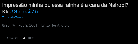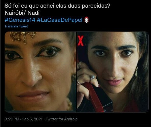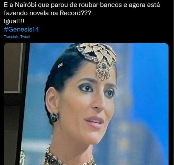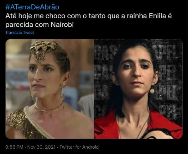 Veja abaixo algumas reações do público sobre a semelhança de Nairóbi em La Casa de Papel e a Rainha Enlila em Gênesis.