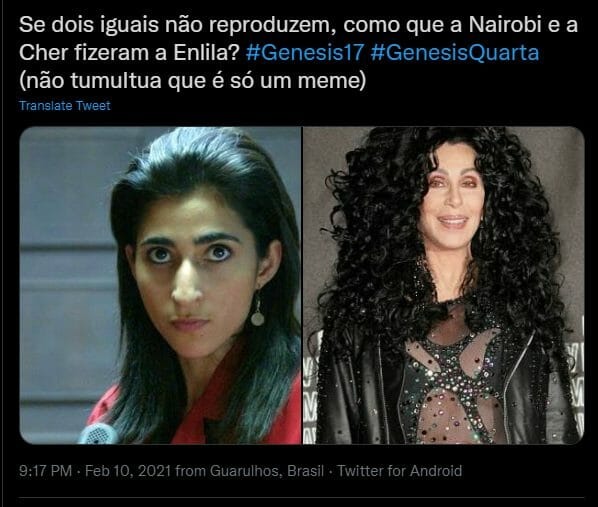 “Impressão minha ou essa rainha é a cara da Nairóbi?”, questionou uma espectadora da novela bíblica Gênesis sobre a atriz Maria Joana, intérprete da Rainha Enlila.
