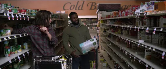 Mais tarde em Bird Box, quando a comida começa a acabar na casa em que ela e vários outros estão se abrigando, um grupo deles vai até a loja local e carrega carrinhos até a borda com coisas de que precisam para sobreviver.