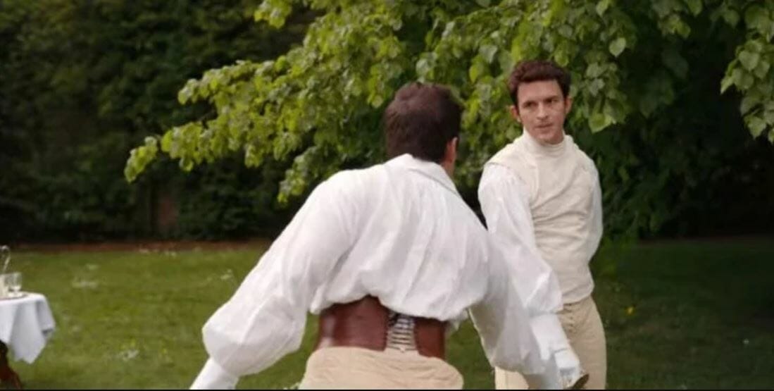 A 2ª temporada de Bridgerton também reproduz uma cena da adaptação de Orgulho e Preconceito, produzida pela BBC. Na série da Netflix, Anthony tenta esquecer seus sentimentos por Kate em uma partida de esgrima. É a mesma atitude tomada pelo Sr. Darcy no livro de Jane Austen. A cena é quase perfeitamente reproduzida nos novos episódios de Bridgerton, embora conte com algumas diferenças em relação ao diálogo.