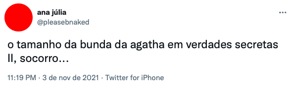 Confira abaixo as reações dos fãs com o bumbum de Agatha Moreira em Verdades Secretas 2.