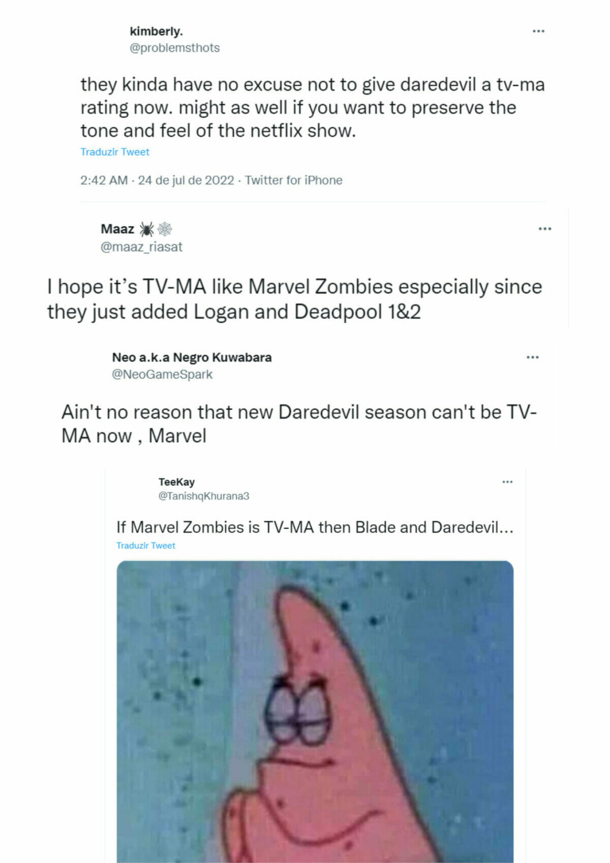 “Se Marvel Zombies é para maiores, Blade e Demolidor…”, espera outro fã.
