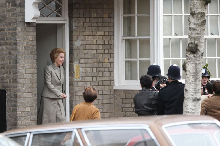 As imagens recriam um momento da ex-Primeira Ministra em 1979, um pouco antes de ser escolhida para o cargo. Compare também a aparência de Gillian Anderson com a verdadeira Margaret Thatcher.