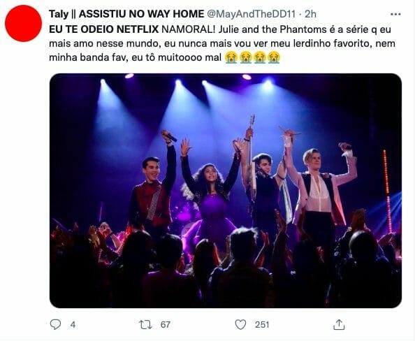 Os fãs de Julie and the Phantoms não estão levando bem o cancelamento da série pela Netflix após uma temporada. No Twitter, os espectadores levantaram um protesto com o termo Eu te odeio Netflix.
