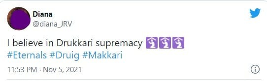 “Estou obcecada por Makkari e Druig, é verdade”, tuitou mais uma fã.