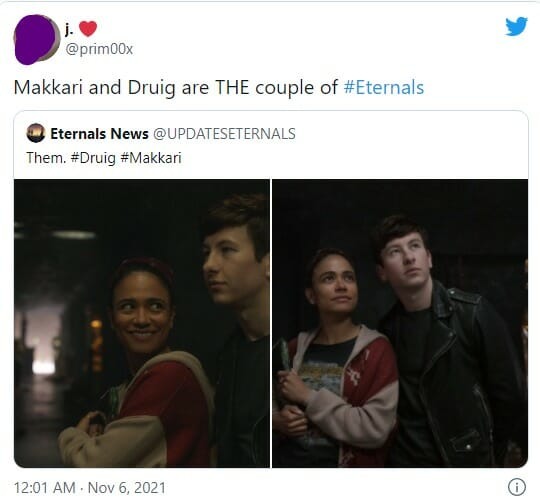 “Makkari e Druig são O casal de Eternos”, escreveu outra fã.