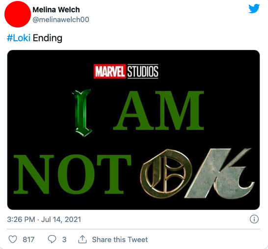 “O fim de Loki”, publicou uma fã com um meme envolvendo o título da série no Disney+: “Eu não estou ok”.