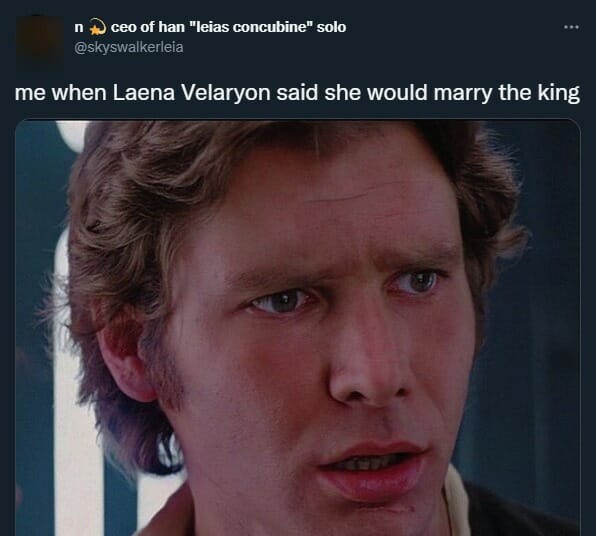 “Eu quando Laena Velaryon disse que se casaria com o rei”, tuitou uma fã.