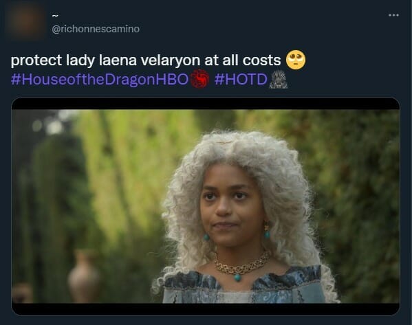 “Protejam a lady Laena Velaryon a qualquer custo”, disse outra fã.