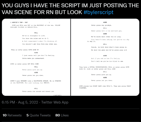 Outro, é simplesmente uma história de amor entre Will Byers e Mike Wheeler – algo que muitos fãs gostariam de ter visto na 4ª temporada de Stranger Things.