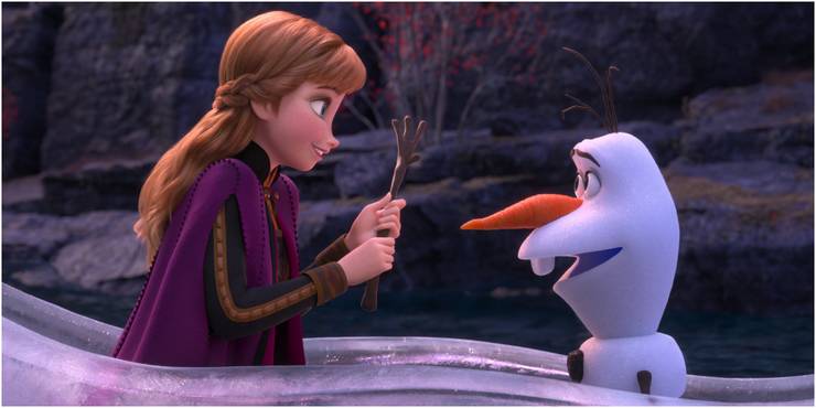 Em Frozen 2, Olaf acompanha Anna em sua busca para resolver o mistério da névoa da Floresta Encantada. Ela está presa em uma caverna com Olaf quando Elsa morre.