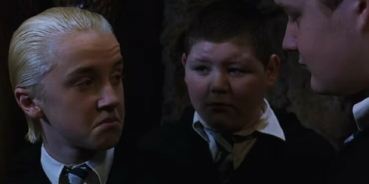 Em Harry Potter e a Câmara Secreta, depois que Hagrid tem o nome limpo, ele retorna a Hogwarts e todos o aplaudem, inclusive Crabbe, que leva um puxão de orelha de Draco.