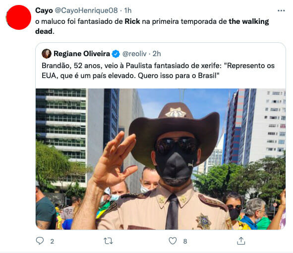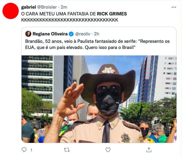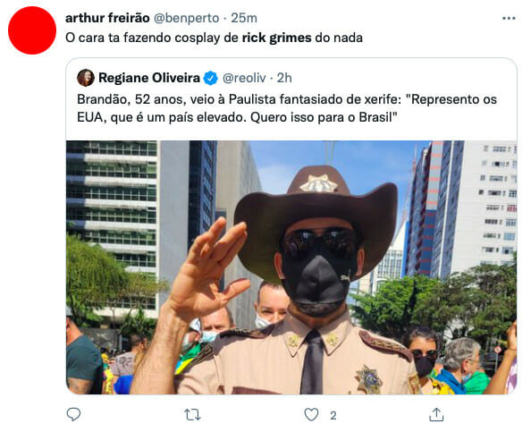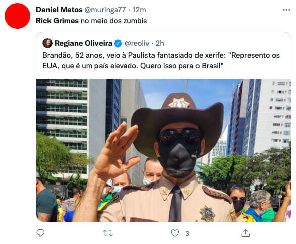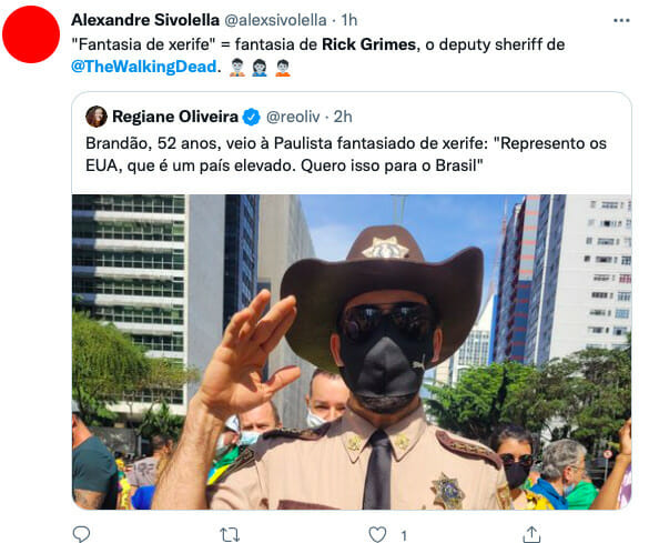 Um fato inusitado viralizou nas redes sociais em um dos atos do dia 7 de setembro no Brasil. Um homem apareceu vestido como xerife e fãs de The Walking Dead notaram que a fantasia é de Rick Grimes, personagem do seriado.