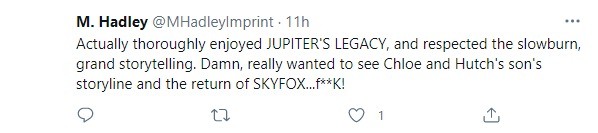 “Eu realmente gostei de O Legado de Júpiter e respeitei a lentidão e grandiosidade da narrativa. Droga, realmente queria ver a história do filho de Chloe e Hutch e o retorno de Skyfox”, escreveu um fã.