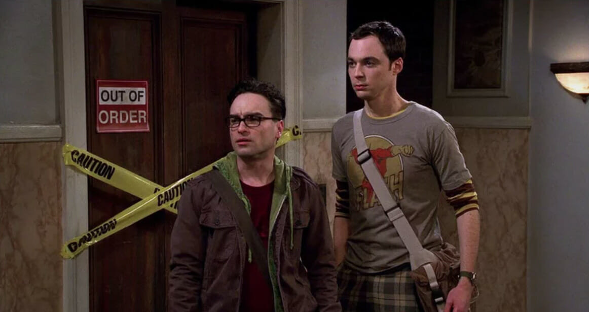 The Big Bang Theory oferece duas explicações diferentes para o defeito no elevador do prédio. Em “The Staircase Implementation”, um episódio da 3ª temporada, a série revela que o elevador quebrou após um experimento mal-sucedido de Leonard. No entanto, em um capítulo do primeiro ano, a série já havia estabelecido que a quebra do elevador teria acontecido há cerca de 2 anos antes do início da história. Sendo assim, qual é a resposta verdadeira?