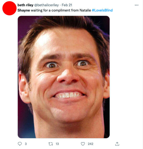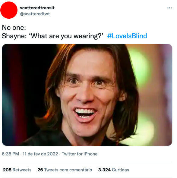 “Shayne querendo um elogio de Natalie”, postou outro, também relembrando Jim Carrey.