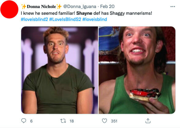 “Eu sabia que conhecia de algum lugar. Shayne tem os modos do Salsicha”, mostrou a assinante da Netflix.