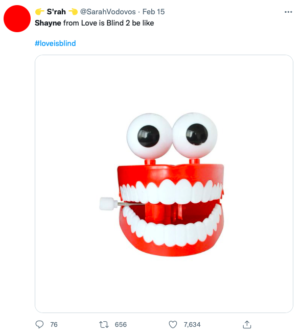“Shayne da segunda temporada de Casamento às Cegas é como”, comparou uma com um brinquedo.