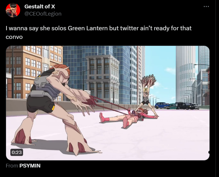 “Quero dizer que ela acabaria com o Lanterna Verde sozinha, mas o Twitter não está pronto para essa conversa”, tuitou um fã.