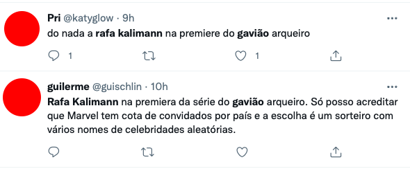 Nas redes sociais, fãs brasileiros chamaram atenção para participação da brasileira no tapete vermelho de Gavião Arqueiro. Confira abaixo.