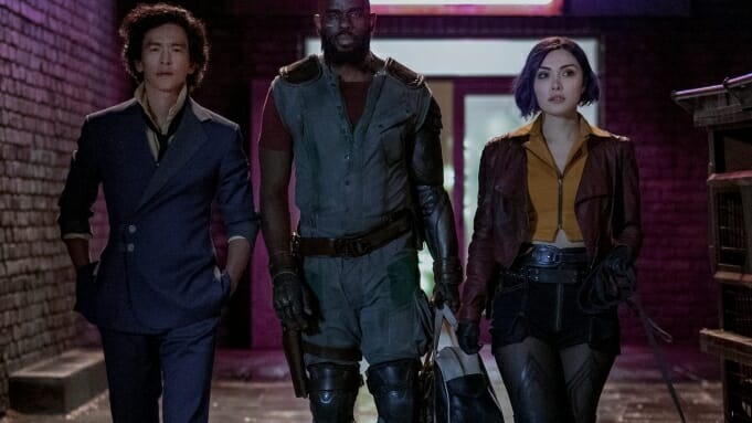 “Conhecidos como ‘cowboys’, Spike Spiegel (John Cho), Jet Black (Mustafa Shakir) e Faye Valentine (Daniella Pineda) formam um trio letal que percorre a galáxia em busca dos criminosos mais perigosos do universo – contanto que sejam bem pagos, obviamente.”