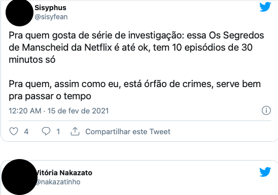 No Twitter, alguns fãs afirmam que não conseguem parar de assistir ao seriado – ao mesmo tempo que fazem muitos elogios para a atração da Netflix.