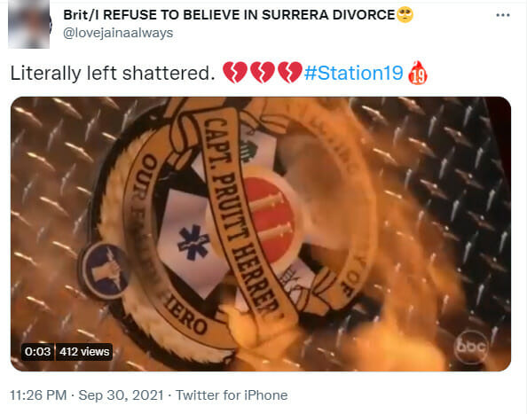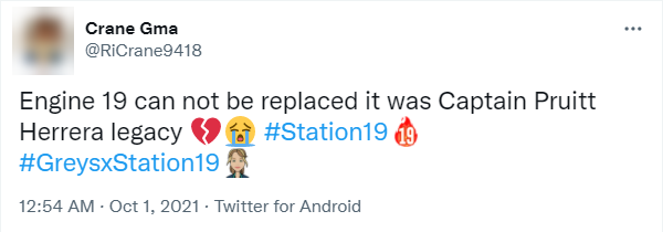A quinta temporada de Station 19 estreou e os fãs estão lamentando a morte do Capitão Pruitt Herrera, como deixaram claro nas redes sociais.