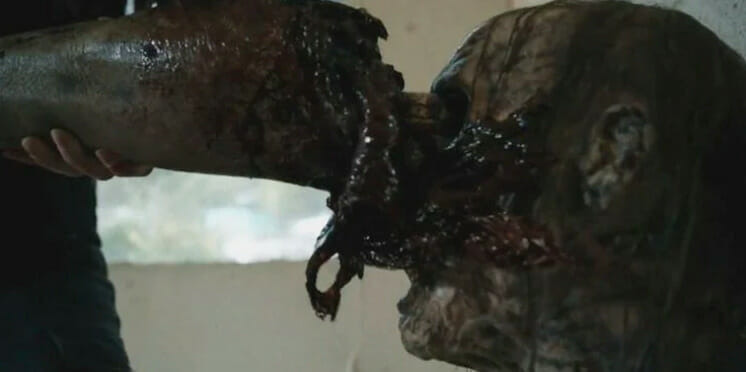 Rosita se deu bem e em um momento inspirado, pegou a própria perna de um zumbi para furá-lo com o fêmur quebrado dele. Totalmente insano – o que deve ter deixado os espectadores malucos.