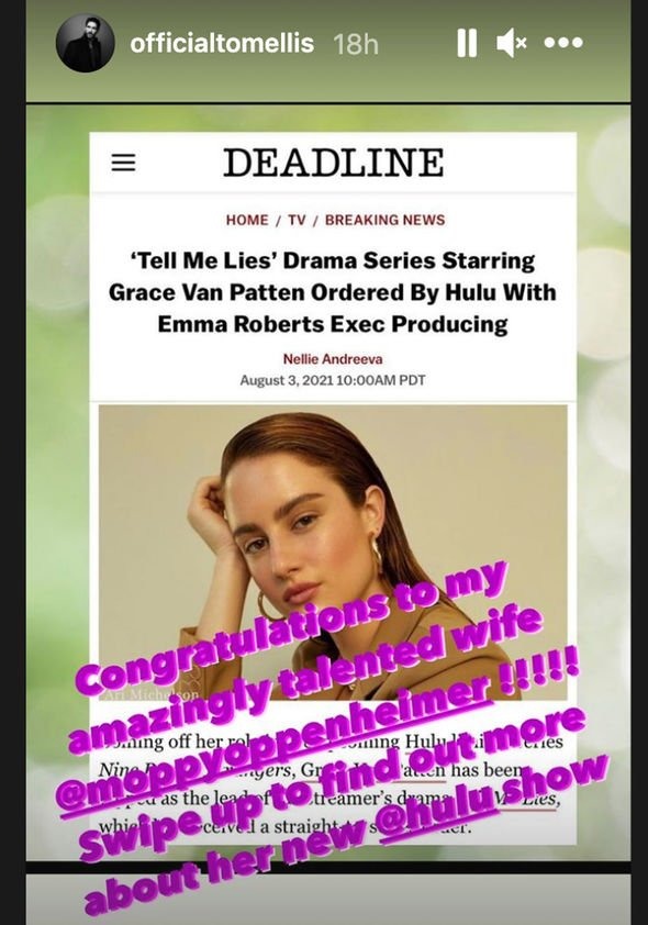 Ela também compartilhou a notícia na própria conta do Instagram, com a legenda: “Muito empolgada em levar o insanamente sexy livro de Carola Lovering para as telinhas. E mal posso esperar para que todos se apaixonem por Grace Van Patten”.