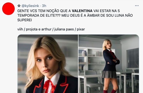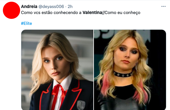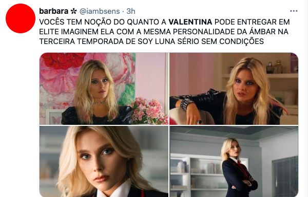 Para os internautas, Valentina tem tudo para repetir o sucesso do programa, em que viveu a vilã Ambar. Os fãs de Elite ficaram tão animados que os nomes da atriz e da personagem de Sou Luna chegaram nos assuntos do momento.