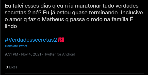 Após o lançamento dos novos episódios de Verdades Secretas 2, fãs ficaram chocados com a trama de Matheus, o personagem de Bruno Montaleone. O fato do modelo de relacionar com mais de uma pessoa da mesma família deixou os espectadores em polvorosa, e se tornou um dos assuntos mais comentados da novela do Globoplay nas redes sociais.