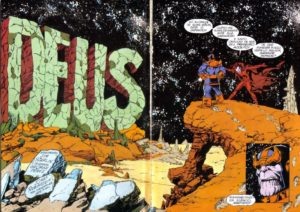 Os fãs de quadrinhos sabem que existem muitas armas cósmicas ou artefatos místicos no Universo da Marvel, e tantos seres onipotentes capazes de produzi-los e empunhá-los. Mas as Jóias do Infinito representam algo verdadeiramente todo-poderoso, que veio antes de todo o Universo Marvel, e do qual veio todo o resto dentro dele. Como Thanos aprende com o Poço Infinito, havia, no começo, uma única forma de vida cósmica. Existindo além de toda realidade e limitações, era um Ser Supremo sem igual ou nome. Thanos sugere que poderia ser chamado de Deus, como no Deus monoteísta das religiões do mundo real, mas apesar de todo o seu poder, estava sozinho. E, portanto, foi solitário.