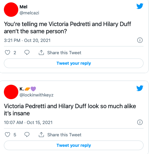 “Victoria Pedretti e Hilary Duff se parecem tanto que chega a ser insano”, comentou outra.