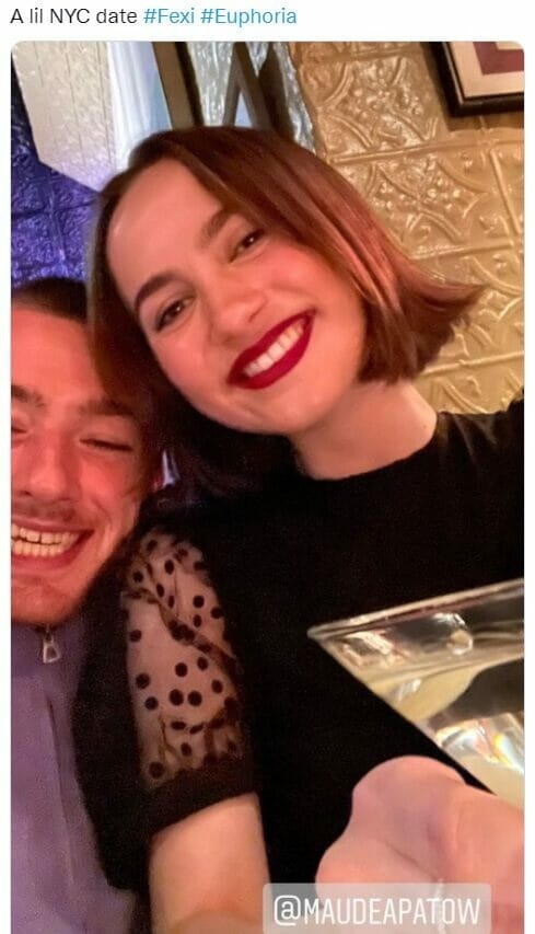 Enquanto o episódio 6 da 2ª temporada de Euphoria fez os fãs vibrarem, um tweet feito por Angus Cloud levantou suspeitas desse possível namoro também na vida real. Na rede social, compartilhou uma foto ao lado de Maude Apatow e, na legenda, escreveu: “um pequeno encontro em NYC”.