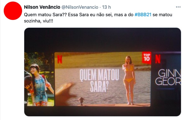 Quem Matou Sara? está fazendo grande sucesso na Netflix. Porém, nas redes sociais, o título do seriado está virando piada entre espectadores do BBB 21 (Big Brother Brasil 21).