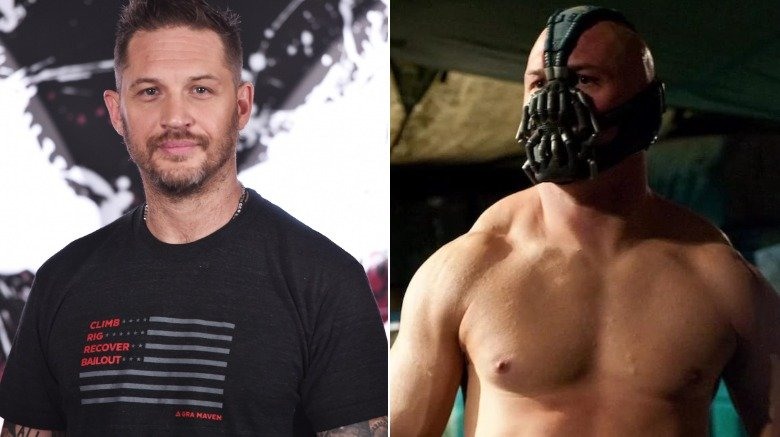 Tom Hardy ficou irreconhecível para interpretar o vilão Bane, em Batman: O Cavaleiro das Trevas Ressurge, além do figurino, o ator precisou ganhar 14 kg de puro músculo.