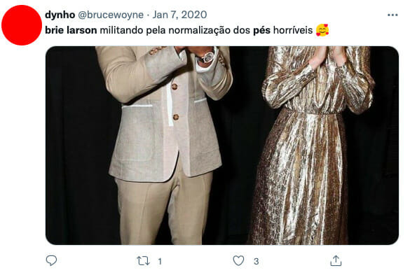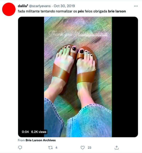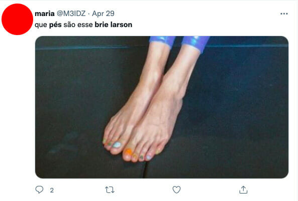 Confira abaixo comentários que fãs já vem fazendo há algum tempo sobre os pés de Brie Larson. Depois, há a publicação da famosa.